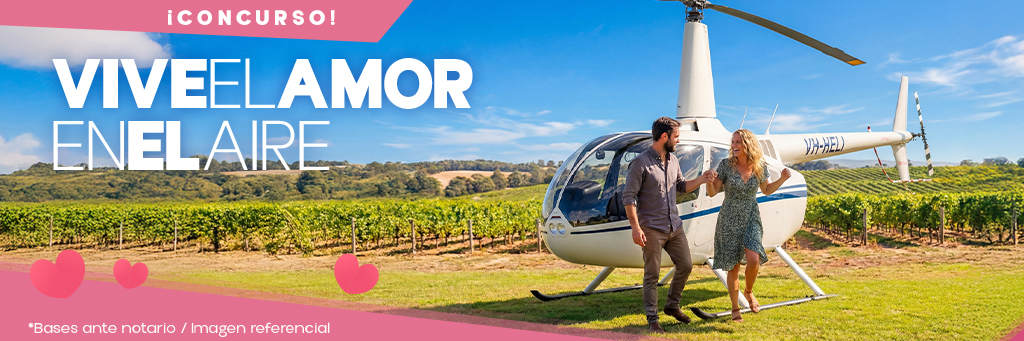 Un viaje en helicóptero ida y vuelta para dos personas con destino a la Viña Las Veletas, incluyendo almuerzo con maridaje.