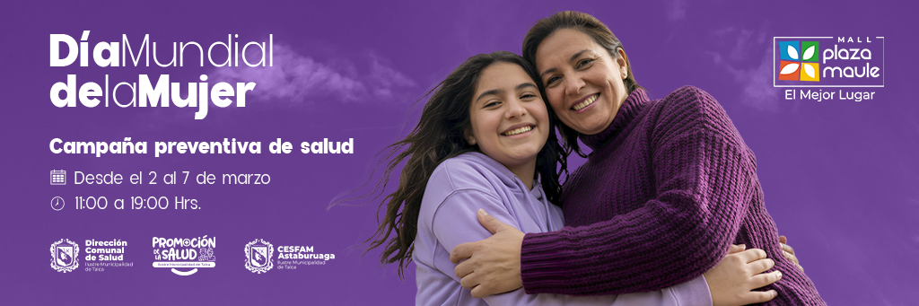 En Plaza Maule conmemoramos el Día Mundial de la Mujer con una campaña de salud gratuita, pensada para acompañarte y cuidar tu bienestar. Durante esta semana podrás acceder a exámenes médicos y material educativo en nuestro Módulo Boulevard.
